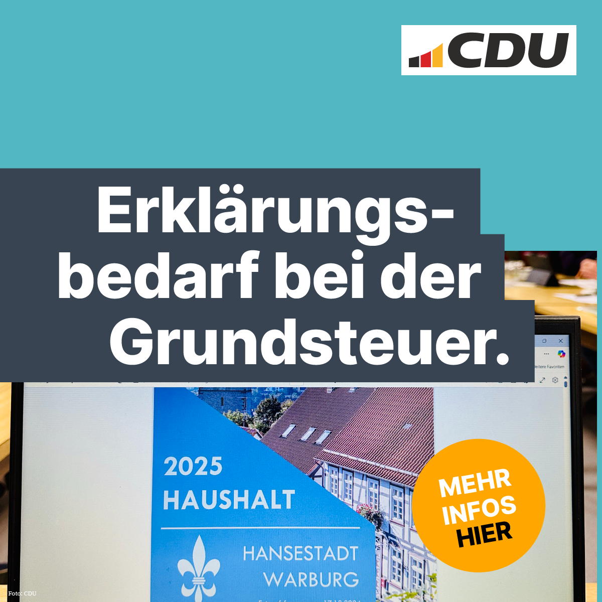 Warburg. Die Immobilienbesitzer im Warburger Land erhalten in diesen Tagen ihre Grundsteuerbescheide. Die Veränderungen bei den Beträgen rufen bei vielen Menschen Unverständnis hervor, stellt die CDU-Fraktion fest. Das zeigt sich in den Sozialen Medien, aber auch in persönlichen Gesprächen, die geführt werden. Oftmals wird der Kommunalpolitik vorgeworfen, die Grundsteuer erhöht zu haben, um gestiegene Ausgaben der Kommune zu decken. Das stimme jedoch nicht, so die CDU-Fraktion in einer Pressemitteilung.